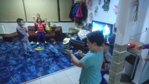 Initially there was a center that hosted all children, but it was closed due to risk of collapse so the children were moved in 3 apartments — Baltagului, Doina and Motoc — all apartments have 3 rooms and host 7-8 children in 2 rooms;